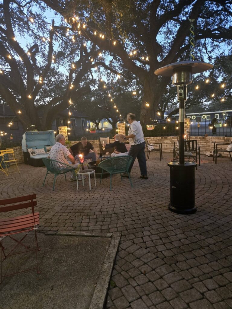 The Outdoor Courtyard: Under the League City Oaks If you need a bit more room to breathe, our sprawling outdoor area is a gift to the soul. Situated right underneath the iconic, sweeping canopies of the League City oak trees, this space is versatile by design. It’s a place where things can get a little loud and fun during a community meetup, but it’s also a place to sit, pray, and meditate.
